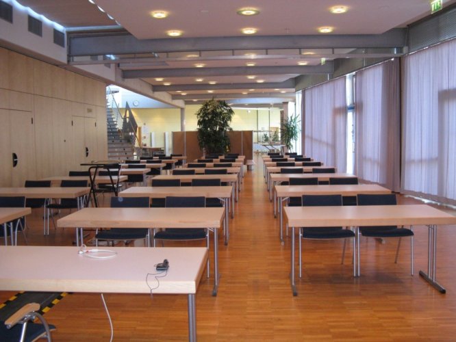 Für kleinere Tagungen und Konzerte ideal und variabel in der Bestuhlung.